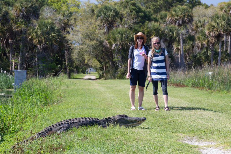 Natürlich lassen wir es uns am Strand von „Isle of Palms“ gut gehen – zu gut, wie die Indianerbräune am Abend beweist. Unsere Neuentdeckung verdanken wir unseren Gastgebern: „Bulls Island“ heißt sie und wir sind uns einig, dass ein halber Tag viel zu kurz war, um dieses wunderbare Wildlife Refuge zu erkunden. Highlight #1: das Totholz am Strand; Highlight #2: Die Alligatoren auf dem Rückweg.