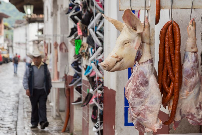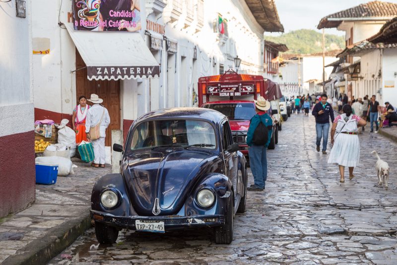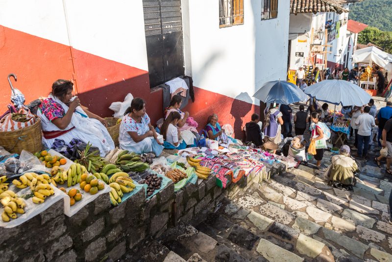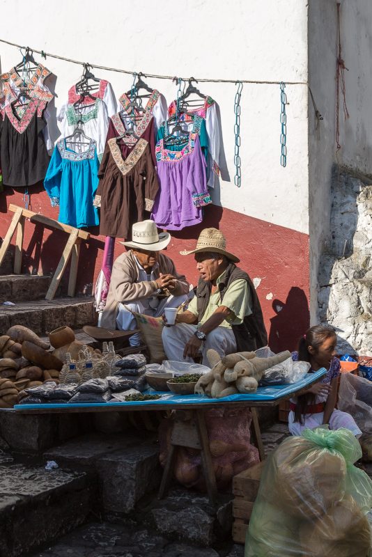 Cuetzalan del Progreso – in der Tat ist dieses wunderschöne Bergdorf ein „Pueblo Mágico“, ein „magischer Ort“. Nachdem wir erfolglos versucht hatten ein Hotel in der Stadt anzufahren (das wäre sicher schon allein eine eigene Geschichte wert), machten wir uns zu Fuß auf, die engen, steilen und steingepflasterten Gassen zu erkunden. Seither bin ich mir sicher, dass weder die Lombard Street (San Francisco) noch die Baldwin Street (Neuseeland) den Titel als steilste Strasse der Welt verdient haben. Wer daran zweifelt, der möge wie wir den direkten Vergleich mit Cuetzalan vornehmen.