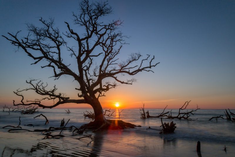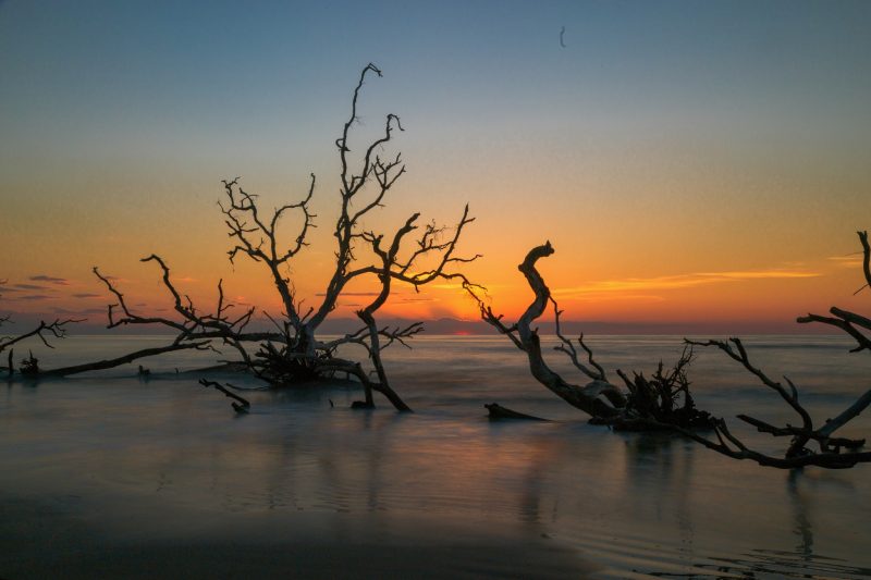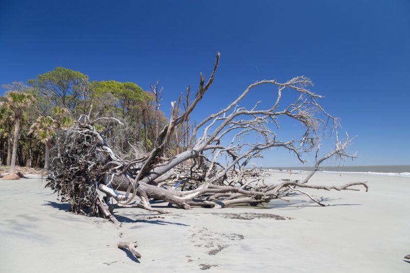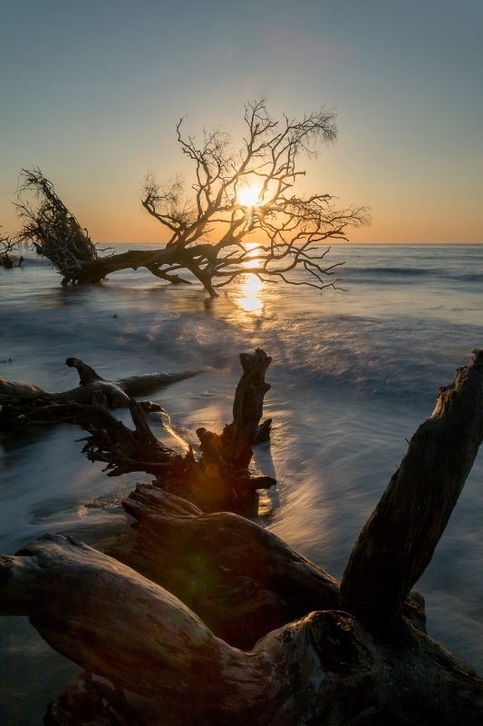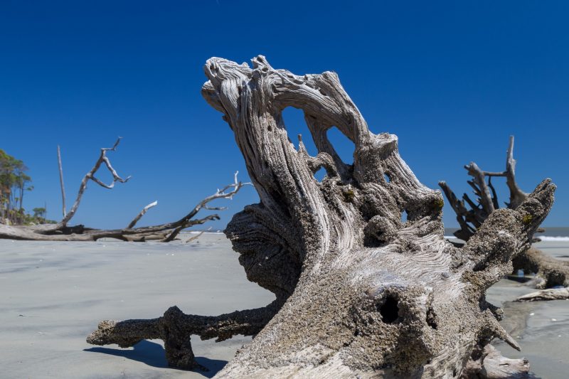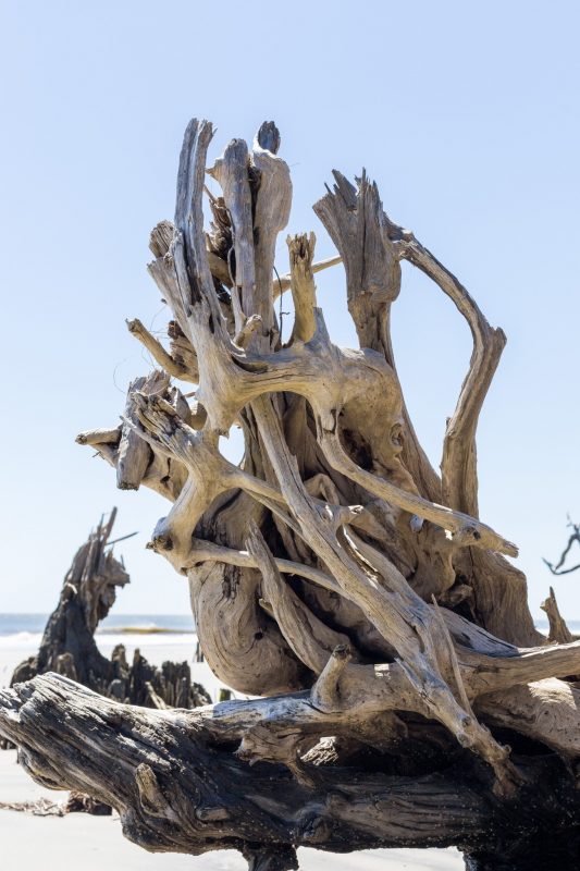 Hunting Island kommt ohne viel Worte aus – ein entspanntes Plätzchen Erde auf diesem Planeten, welches uns in der Tat verzaubert hat. Ein Strandspaziergang kann hier schon mal endlos sein und wir beide konnten uns auf ganz unterschiedliche Weise in den Details der vielen Totholzbäume verlieren – Julia mit dem Zeichenblock und ich mit der Kamera.