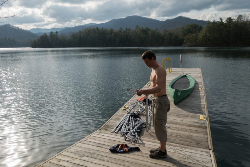 Alles fängt immer irgendwie an – diese Geschichte mit einem einfachen unscheinbaren Knistern. Es war ein schöner Tag, der mit einem Besuch im überaus interessanten und empfehlenswerten Cherokee-Museum begann und uns im Anschluss einen sonnigen Nachmittag am Lake Santeetlah beschert hat. Sogar unser Kanu konnten wir zum ersten Mal hier aufbauen und die Abendsonne auf dem See genießen. Selbstverständlich wurde auch noch lecker gekocht – zwar kein Osterlamm oder etwas dem Osterfest gebührendes – dafür aber eine frische Gemüsepfanne mit Couscous.