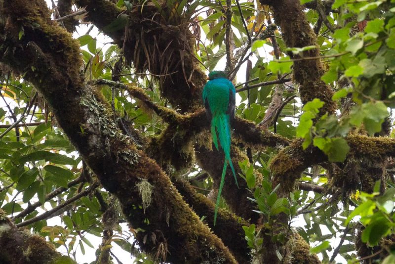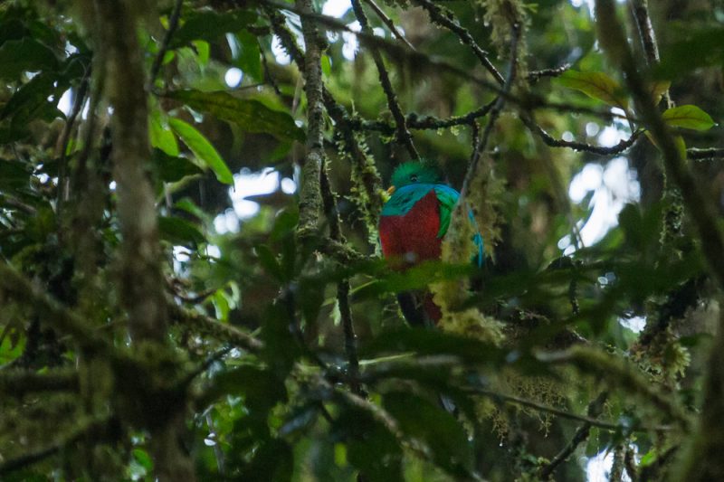 Ohne einen lokalen Guide gleicht das Auffinden einem reinen Glücksspiel mit Chancen im unteren Promill-Bereich. Selbst mit einem erfahrenen Guide (DANKE an Jason) dessen Auge den Quetzal entdeckt, braucht es noch viel Zeigen und Beschreiben, bis unsere Augen ihn ebenfalls sehen können. Dann aber, und das muss ich ehrlich gestehen, ist das Erlebnis grandios! Empfohlen sei an dieser Stelle nicht etwa der Nationalpark „los Quetzales“ sondern der „Mirador los Quetzales“ etwa 10km vor dem eigentlichen Park. Während man im Park von nicht gerade auskunftsfreudigen Rangern gesagt bekommt, ein 2km kurzer „Wander“Weg (wohlgemerkt hin und zurück) ist die einzige Möglichkeit den Park kennenzulernen, sind Jason und sein Vater Oscar von der Lodge „Mirador los Quetzales“ begeisterte Ornithologen und einem sehr fairen Preis steht eine ausgezeichnete Leistung. Spektiv und Fernglas gehören genauso zur Ausstattung wie eine gehörige Portion Motivation um den Quetzal aufzuspüren. Angemerkt sei der Vollständigkeit noch, dass es an der Lodge hervorragende Möglichkeiten gibt Kolibris zu beobachten, einen wirklich schönen 5km Rundweg durch Nebelwald zu gehen und die Forellen fürs Mittag selbst zu angeln.