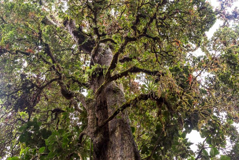 Wir sind froh der Landeshauptstadt San José endlich entkommen zu sein, aber was uns auf den nächsten 60 Kilometern erwartet ist ebenfalls eine große Herausforderung. Die Panamericana überwindet südöstlich die zentrale Kordillere der mittelamerikanischen Landbrücke. Am Cerro de la Muerte (dem Todesberg) erreicht die Panamericana ihren höchsten Punkt auf über 3300 Meter Höhe, glaubt man dem Schild am Straßenrand bei Kilometer 89 sind es genau 3335 Meter über dem Meer. Da die Straße vor allem von Trucks befahren wird, was in Kombination mit bis zu 20%igen Steigungen, endlos vielen teils schwindelerregende Kurven und Dauerregen für uns Überholmanöver unmöglich macht, lassen wir die Fahrt gemütlich im zweiten Gang angehen. Aber anscheinend gilt diese Fahrweise nur für uns – die Manöver vieler Latinos der meist sträflich überladen schweren Trucks lässt uns nicht nur einmal die Luft anhalten. Überholen vor oder in der Kurve? Nur zu, der Herr wird’s schon richten! Vielen richtet er es allerdings nicht wie erwartet. Entlang der Panamericana reihen sich jede Menge Grabkreuze und der Name Cerro de la Muerte (Todesberg) kommt nicht von ungefähr.