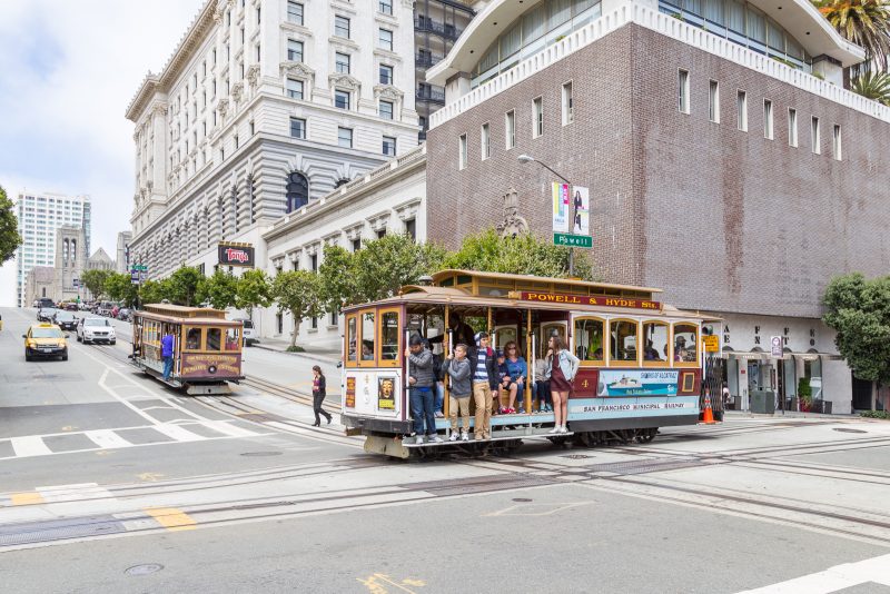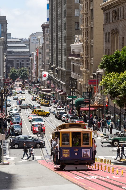 Motiviert durch wenigsten einen kurzen Blick auf die Golden Gate Bridge, machten wir uns auf Sightseeingtour durch die steilen und bunten Straßen. Unser erster Anlaufpunkt war die Lombard Street, die kurvenreichste Straße der Welt mit einem Gefälle von 27%. Auf dem Weg dorthin wurden wir teilweise von den schönen urigen Cable Cars begleitet. Wir dachten auch daran mit ihnen zu fahren, aber die Preise dafür waren einfach unverschämt teuer. Dafür machten wir später ein Abstecher im kostenlosen Cable Car Museum, welches interessant und anschaulich die Funktionsweise und die Geschichte erklärt.