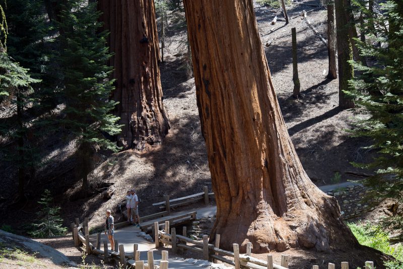 Wie beeindruckend und groß Bäume seien können, haben wir ja schon im Redwood NP gesehen, aber die Sequoias sind nochmal eine kleine Steigerung. Der Sequoia National Park liegt mehr im Zentrum von Kalifornien, was zur Folge hat, dass ein deutlich höherer Menschenandrang herrscht. Gegenüber den Redwoods haben die Mammutbäume hier einen breiteren Stamm, aber sind dafür in der Größe etwas kleiner. Die Sequoias besitzen eine schöne rotbraune Baumstammfarbe, was sie, in Kombinationen mit ihrer saftig grünen Krone, zu einem schönen Fotomotiv macht.