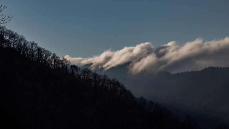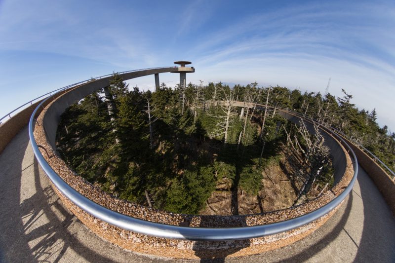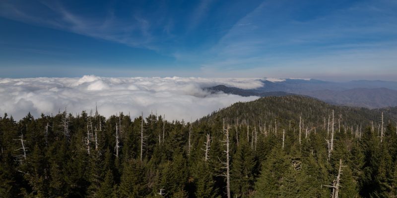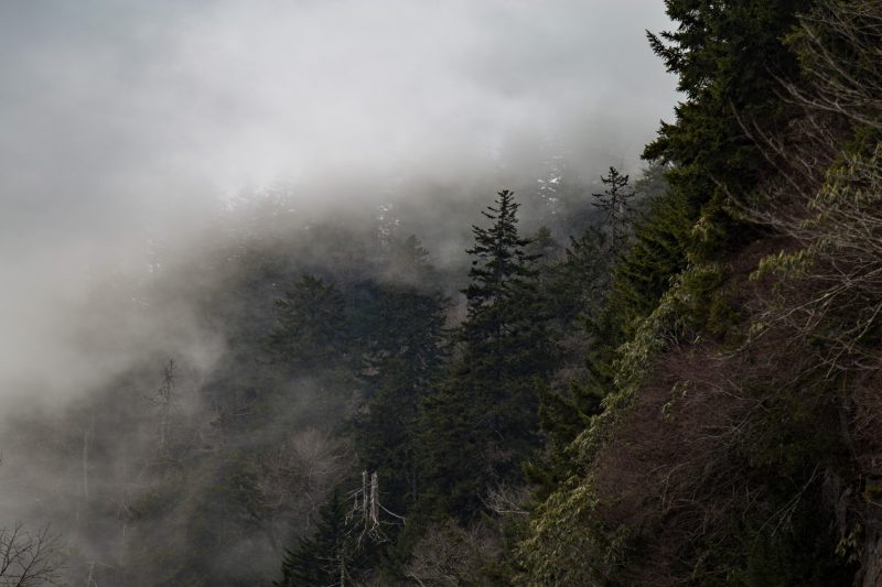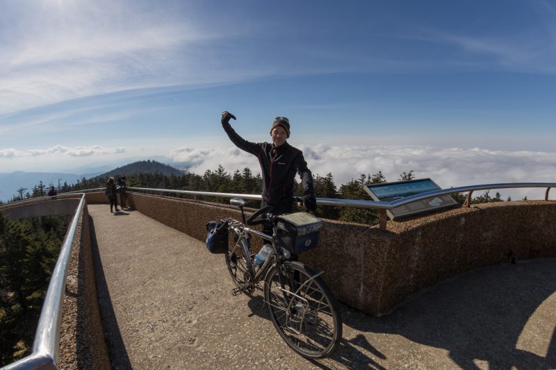 Die Smokys, deren Waldflächen zu den ältesten Wäldern der Erde gehören und gleichwohl das größte Urwaldgebiet im Osten der USA bilden, werden unseren Erwartungen gerecht – sie hüllen sich in Nebel wie ihr Name schon sagt. Glücklicherweise ist heute der letzte Tag an dem die Straße zum Clingmans Dome noch gesperrt ist – wohlgemerkt nur für Autos. Während Julia ihre Erkältung im Schlafsack auskuriert, setze ich mich aufs Rad, und nehme mir die 500 Höhenmeter in dicker Jacke, Handschuhen und Mütze vor. Noch säumt der Schnee des Winters die Ränder der sich hinaufwindende Straße und der kalte Wind der die Nebel durch die Bäume treibt ist eine echte Herausforderung. Oben angekommen belohnt mich die Sonne mit ihren Strahlen und eine herrliche Aussicht über die gesamten Smokys.