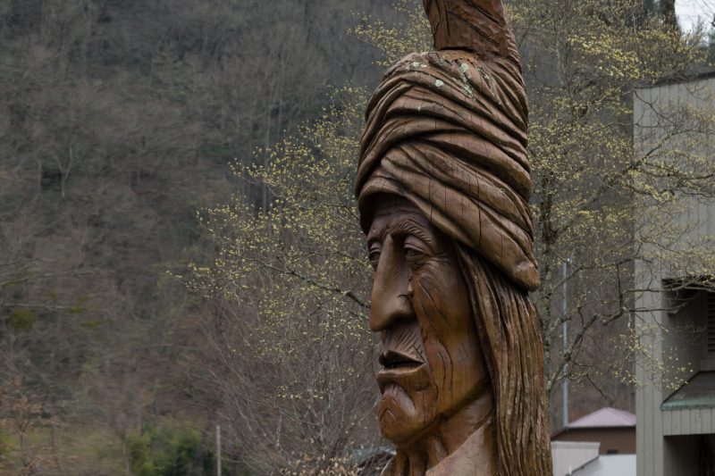 Bevor wir in den eigentlichen Great Smoky Mountains Nationalpark weiterfahren, führt unser Weg zwangsläufig am Ende des Blueridge Parkway durch das Gebiet (Reservat) der Cherokee Indianer. Zugegeben – die Stadt Cherokee an sich hat überhaupt nichts bezauberndes – ganz im Gegenteil. Indianer-Handarbeiten, ein großes Spielkasino und bunte Werbung säumen die Durchgangsstrasse links und rechts. Im Ort selbst auch kein besserer Anblick. Indianer-Folklore und Massenbespaßung, Handwerkskunst im Ausverkauf. Zwischendrin ein paar Kleinkunstbühnen auf denen sich „echte“ Cherokee ihre Tänze vor einer Hand voll Zuschauern aufführen.